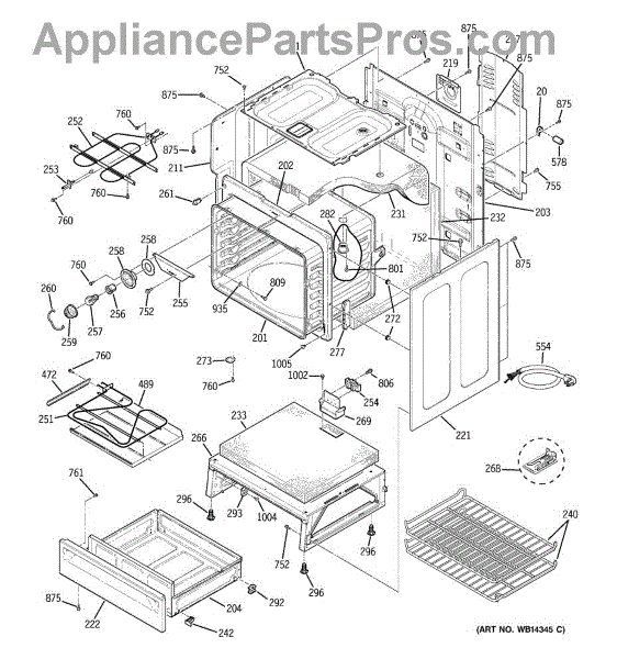 The Rear Door Support is an OEM replacement part for GE ranges. Located at the base of the range, this bracket provides weight-bearing support for the lower oven drawer. It facilitates smooth extension and retraction of the drawer. Causes of faulty support can include cracks or fractures developing over extended use, worn joints unable to sustain drawer weight, or misalignment from repeated opening/closing stress. Symptoms of a bad support include: