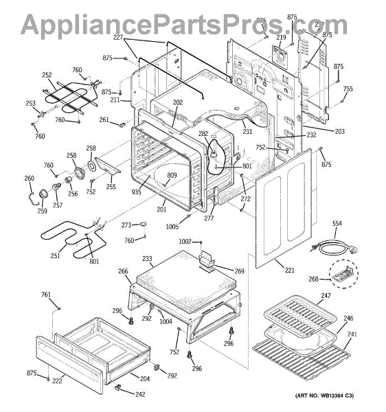 The Rear Door Support is an OEM replacement part for GE ranges. Located at the base of the range, this bracket provides weight-bearing support for the lower oven drawer. It facilitates smooth extension and retraction of the drawer. Causes of faulty support can include cracks or fractures developing over extended use, worn joints unable to sustain drawer weight, or misalignment from repeated opening/closing stress. Symptoms of a bad support include: