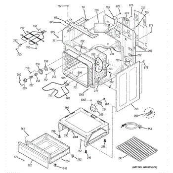 The Rear Door Support is an OEM replacement part for GE ranges. Located at the base of the range, this bracket provides weight-bearing support for the lower oven drawer. It facilitates smooth extension and retraction of the drawer. Causes of faulty support can include cracks or fractures developing over extended use, worn joints unable to sustain drawer weight, or misalignment from repeated opening/closing stress. Symptoms of a bad support include: