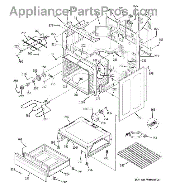 The Rear Door Support is an OEM replacement part for GE ranges. Located at the base of the range, this bracket provides weight-bearing support for the lower oven drawer. It facilitates smooth extension and retraction of the drawer. Causes of faulty support can include cracks or fractures developing over extended use, worn joints unable to sustain drawer weight, or misalignment from repeated opening/closing stress. Symptoms of a bad support include: