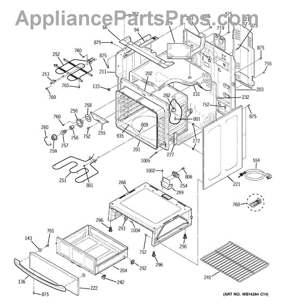 The Rear Door Support is an OEM replacement part for GE ranges. Located at the base of the range, this bracket provides weight-bearing support for the lower oven drawer. It facilitates smooth extension and retraction of the drawer. Causes of faulty support can include cracks or fractures developing over extended use, worn joints unable to sustain drawer weight, or misalignment from repeated opening/closing stress. Symptoms of a bad support include: