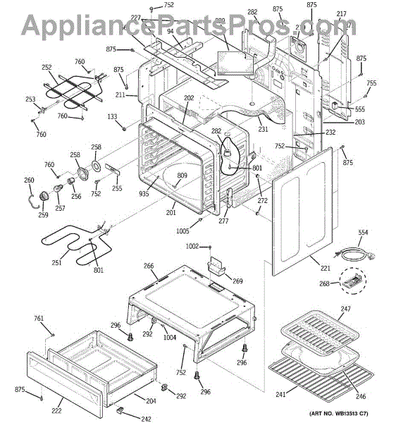 The Broiler Pan Kit is an OEM part for GE ranges. It serves as a secure platform for positioning meats, vegetables, and various foods directly beneath the broiler element, ensuring safe and efficient cooking. The pan is about 17 inches wide by 13 inches deep. Over time, wear and tear can affect broiler pans, causing issues such as flaking or stripping of the non-stick coating and the development of small ridges or holes that permit grease to drip down. Symptoms of bad broiler pans include: