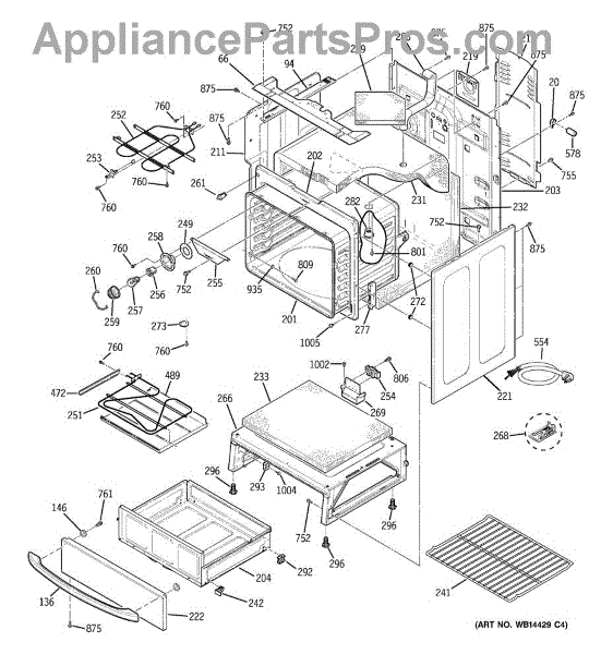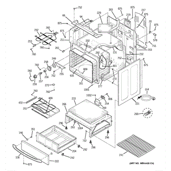 The Rear Door Support is an OEM replacement part for GE ranges. Located at the base of the range, this bracket provides weight-bearing support for the lower oven drawer. It facilitates smooth extension and retraction of the drawer. Causes of faulty support can include cracks or fractures developing over extended use, worn joints unable to sustain drawer weight, or misalignment from repeated opening/closing stress. Symptoms of a bad support include: