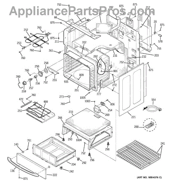 The Rear Door Support is an OEM replacement part for GE ranges. Located at the base of the range, this bracket provides weight-bearing support for the lower oven drawer. It facilitates smooth extension and retraction of the drawer. Causes of faulty support can include cracks or fractures developing over extended use, worn joints unable to sustain drawer weight, or misalignment from repeated opening/closing stress. Symptoms of a bad support include: