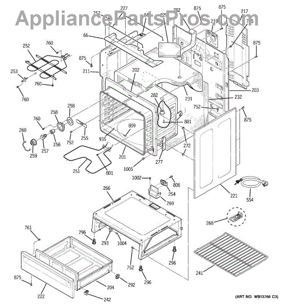 The Rear Door Support is an OEM replacement part for GE ranges. Located at the base of the range, this bracket provides weight-bearing support for the lower oven drawer. It facilitates smooth extension and retraction of the drawer. Causes of faulty support can include cracks or fractures developing over extended use, worn joints unable to sustain drawer weight, or misalignment from repeated opening/closing stress. Symptoms of a bad support include: