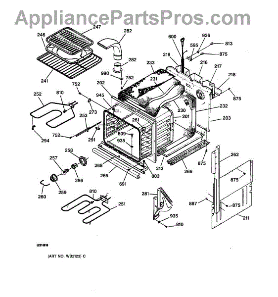 This Back main is the oven's rear chassis panel that supports internal components and protects wiring. It restores structural support and helps prevent contact with hot or moving parts for safe operation. What it does: