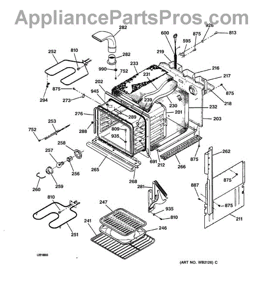 This Back main is the oven's rear chassis panel that supports internal components and protects wiring. It restores structural support and helps prevent contact with hot or moving parts for safe operation. What it does: