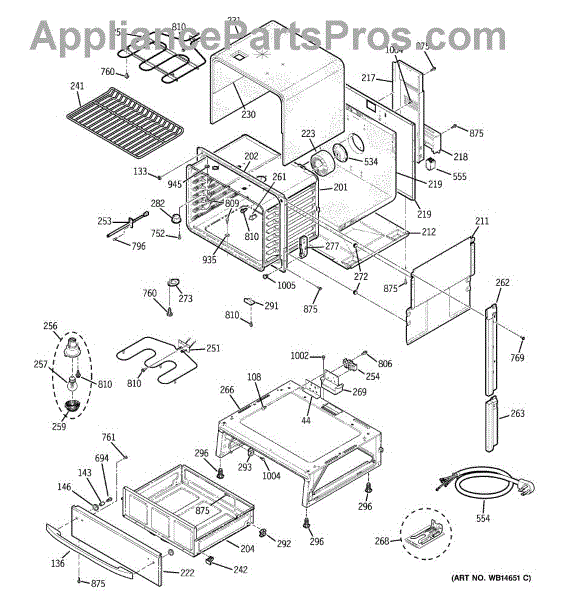 The Broiler Assembly is an OEM replacement part for GE range. Located inside the oven, it houses the heating elements responsible for the broil cooking function. Causes of a bad broiler assembly can include cracked or burnt-out heating elements that no longer ignite, damage from accidentally being cleaned with abrasive chemicals, or warping of metal components from overheating. Symptoms of a bad broiler assembly include: