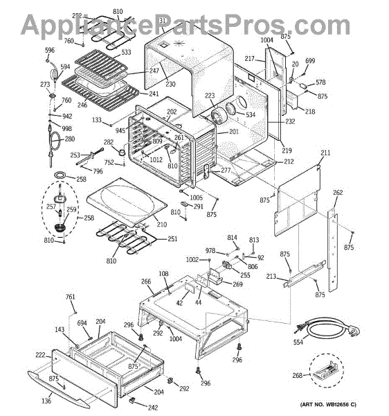 Oven cavity wrapper assembly forms the outer shell around the cooking chamber. Replace if cracked, damaged, or rusted to restore structural integrity.