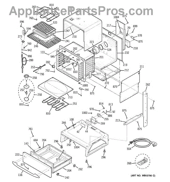 Oven cavity wrapper assembly forms the outer shell around the cooking chamber. Replace if cracked, damaged, or rusted to restore structural integrity.
