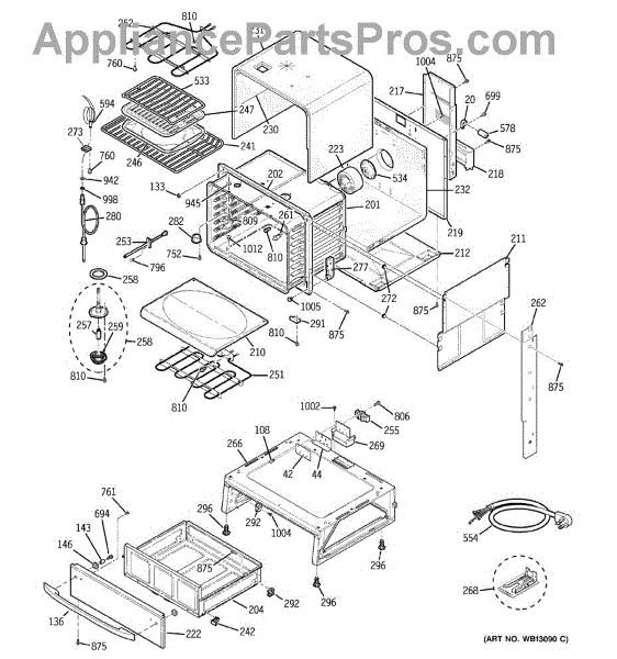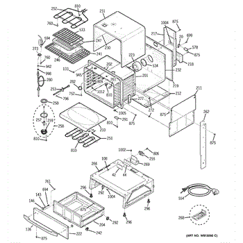 Oven cavity wrapper assembly forms the outer shell around the cooking chamber. Replace if cracked, damaged, or rusted to restore structural integrity.