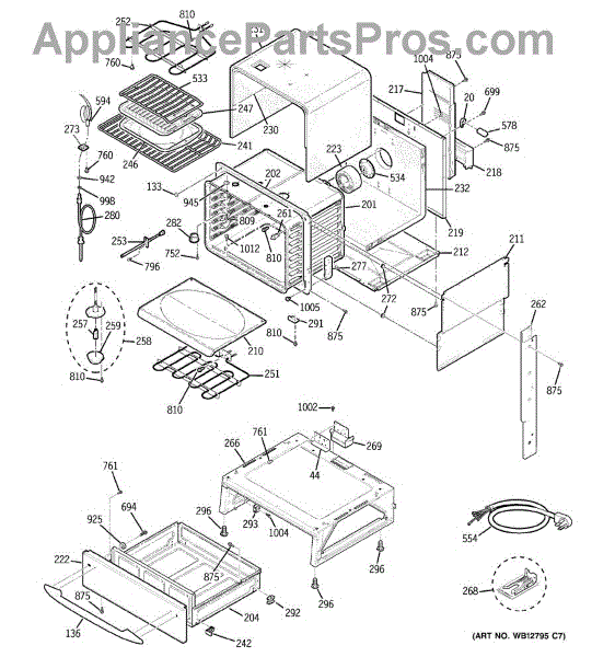 The Broiler Assembly is an OEM replacement part for GE range. Located inside the oven, it houses the heating elements responsible for the broil cooking function. Causes of a bad broiler assembly can include cracked or burnt-out heating elements that no longer ignite, damage from accidentally being cleaned with abrasive chemicals, or warping of metal components from overheating. Symptoms of a bad broiler assembly include: