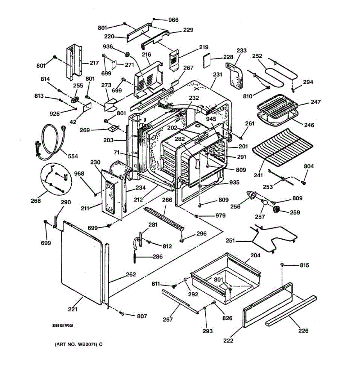 Left side oven door hinge provides smooth opening and closing operation. Replace if cracked, seized, worn, or binding. Mounts to oven cavity interior.