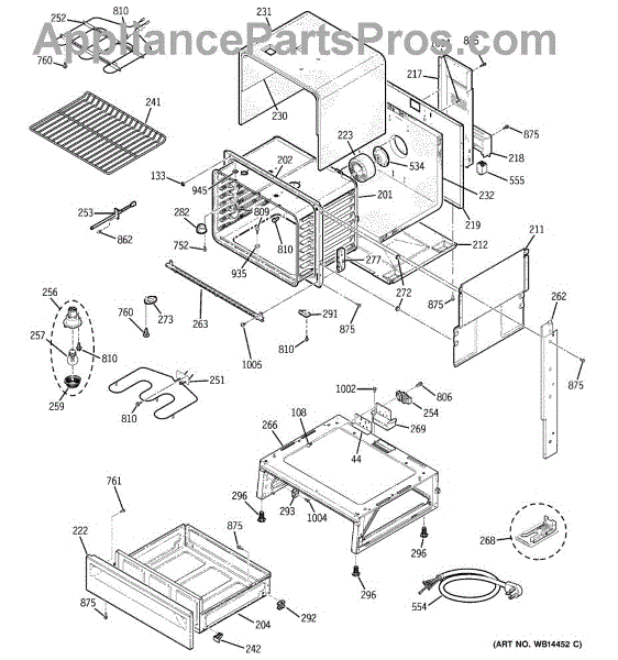 The Rear Door Support is an OEM replacement part for GE ranges. Located at the base of the range, this bracket provides weight-bearing support for the lower oven drawer. It facilitates smooth extension and retraction of the drawer. Causes of faulty support can include cracks or fractures developing over extended use, worn joints unable to sustain drawer weight, or misalignment from repeated opening/closing stress. Symptoms of a bad support include: