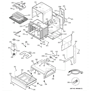The Rear Door Support is an OEM replacement part for GE ranges. Located at the base of the range, this bracket provides weight-bearing support for the lower oven drawer. It facilitates smooth extension and retraction of the drawer. Causes of faulty support can include cracks or fractures developing over extended use, worn joints unable to sustain drawer weight, or misalignment from repeated opening/closing stress. Symptoms of a bad support include: