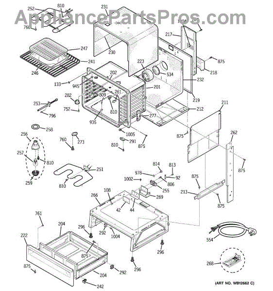 The Broiler Assembly is an OEM replacement part for GE range. Located inside the oven, it houses the heating elements responsible for the broil cooking function. Causes of a bad broiler assembly can include cracked or burnt-out heating elements that no longer ignite, damage from accidentally being cleaned with abrasive chemicals, or warping of metal components from overheating. Symptoms of a bad broiler assembly include: