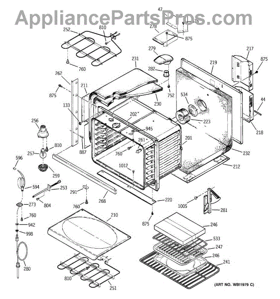 The Broiler Assembly is an OEM replacement part for GE range. Located inside the oven, it houses the heating elements responsible for the broil cooking function. Causes of a bad broiler assembly can include cracked or burnt-out heating elements that no longer ignite, damage from accidentally being cleaned with abrasive chemicals, or warping of metal components from overheating. Symptoms of a bad broiler assembly include: