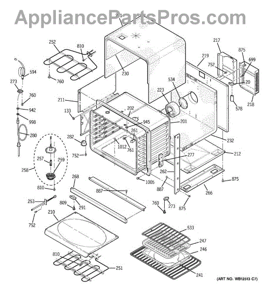 Oven cavity wrapper assembly forms the outer shell around the cooking chamber. Replace if cracked, damaged, or rusted to restore structural integrity.
