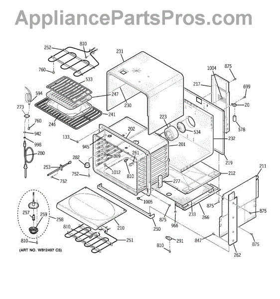Oven cavity wrapper assembly forms the outer shell around the cooking chamber. Replace if cracked, damaged, or rusted to restore structural integrity.