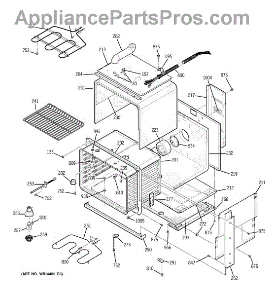 The Broiler Assembly is an OEM replacement part for GE range. Located inside the oven, it houses the heating elements responsible for the broil cooking function. Causes of a bad broiler assembly can include cracked or burnt-out heating elements that no longer ignite, damage from accidentally being cleaned with abrasive chemicals, or warping of metal components from overheating. Symptoms of a bad broiler assembly include: