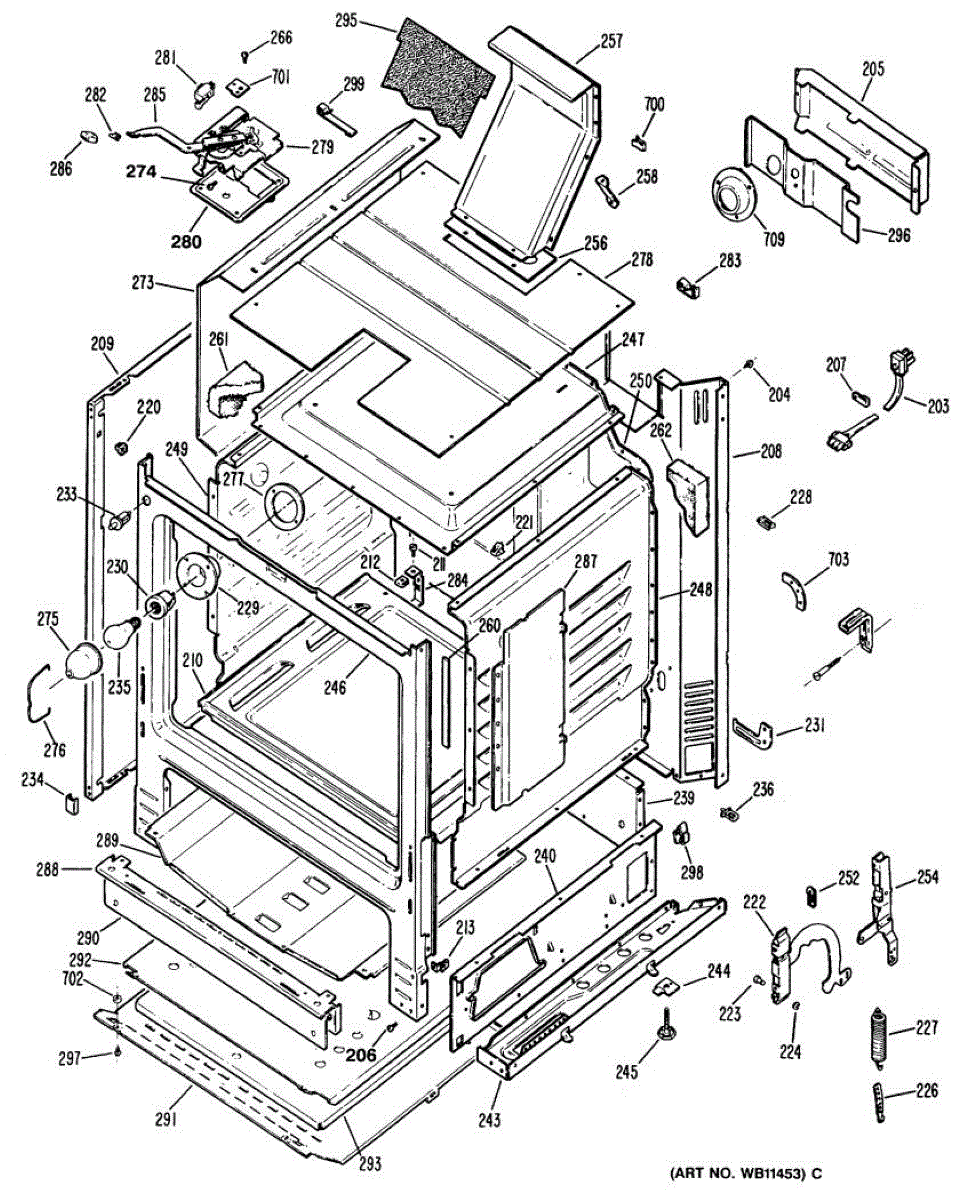 Stamped metal shield that protects the oven's lower cavity and insulation from excessive heat. Replace if cracked, rusted, corroded, or damaged.