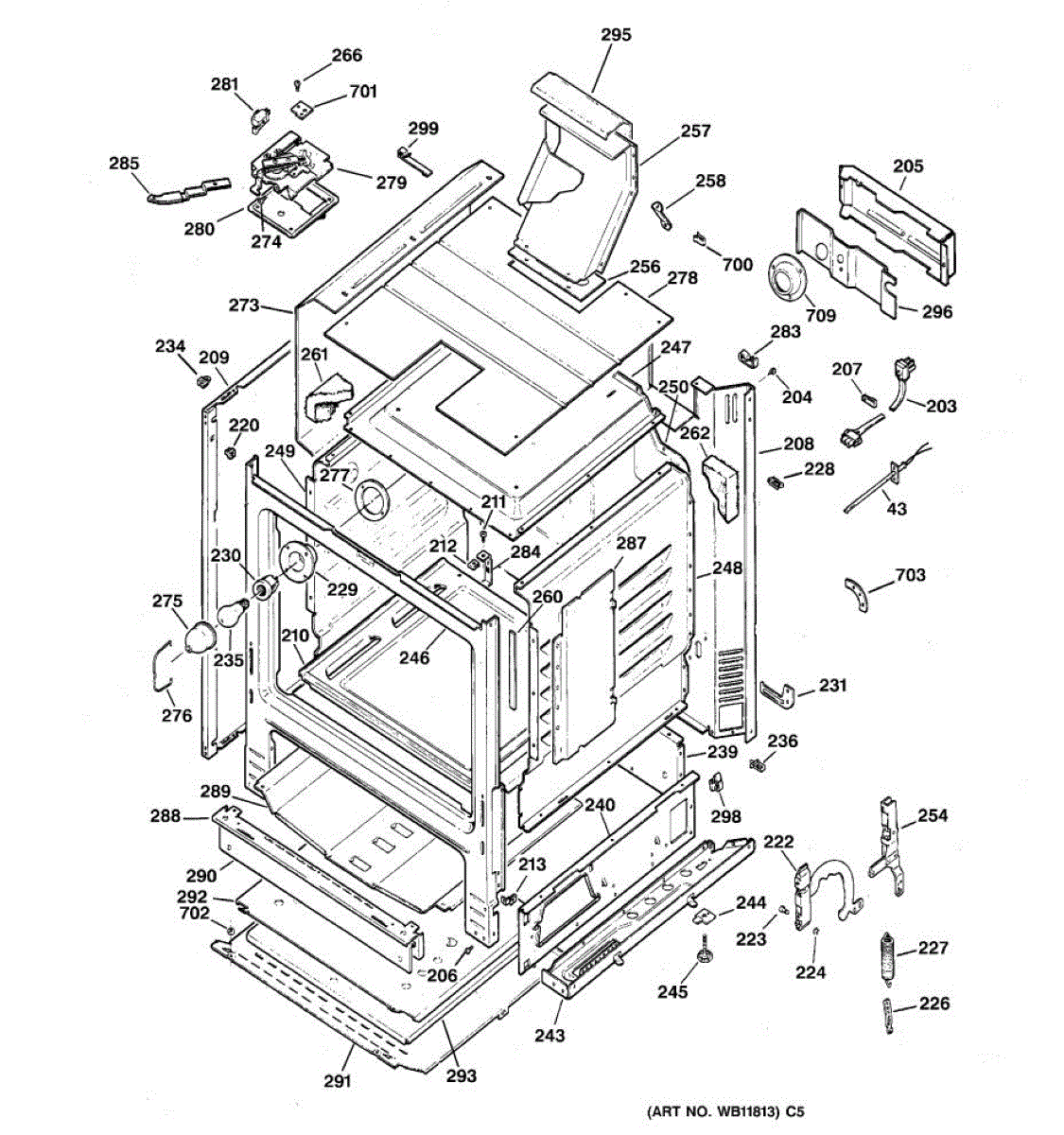 Frame weld assembly for ranges. Structural component that forms part of the cabinet framework. Replace if bent, cracked, or damaged during installation or use.