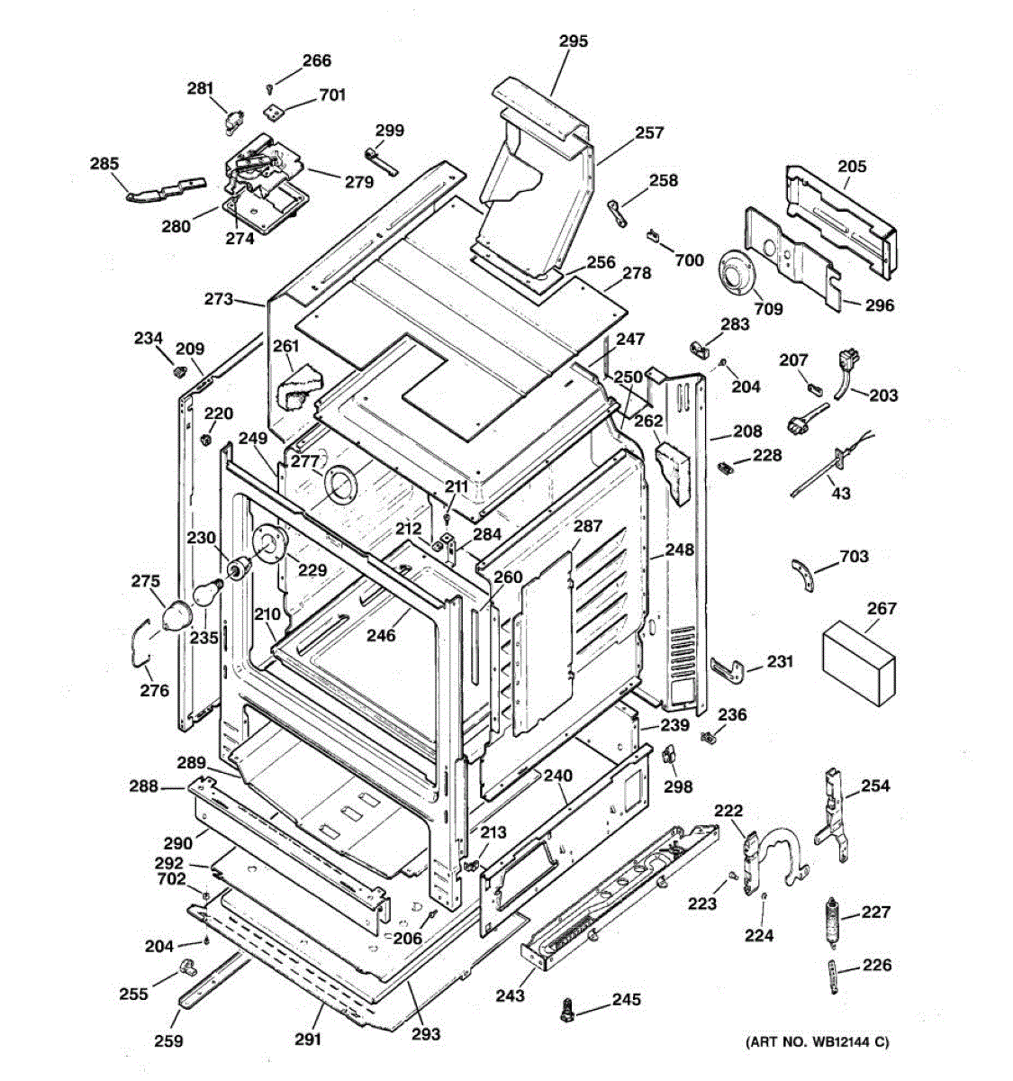 Frame weld assembly for ranges. Structural component that forms part of the cabinet framework. Replace if bent, cracked, or damaged during installation or use.