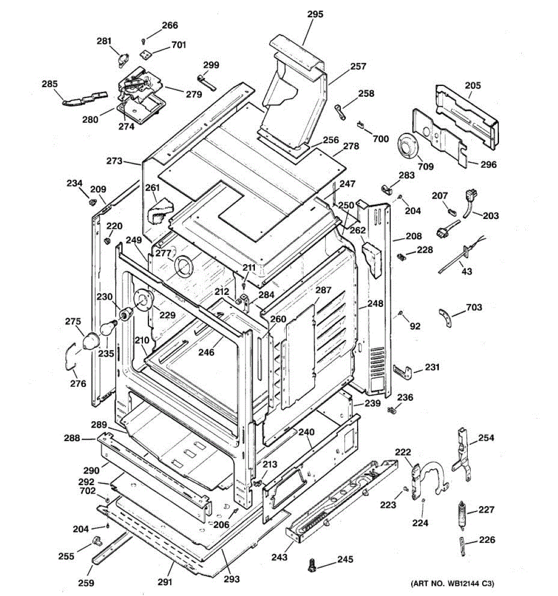 Frame weld assembly for ranges. Structural component that forms part of the cabinet framework. Replace if bent, cracked, or damaged during installation or use.
