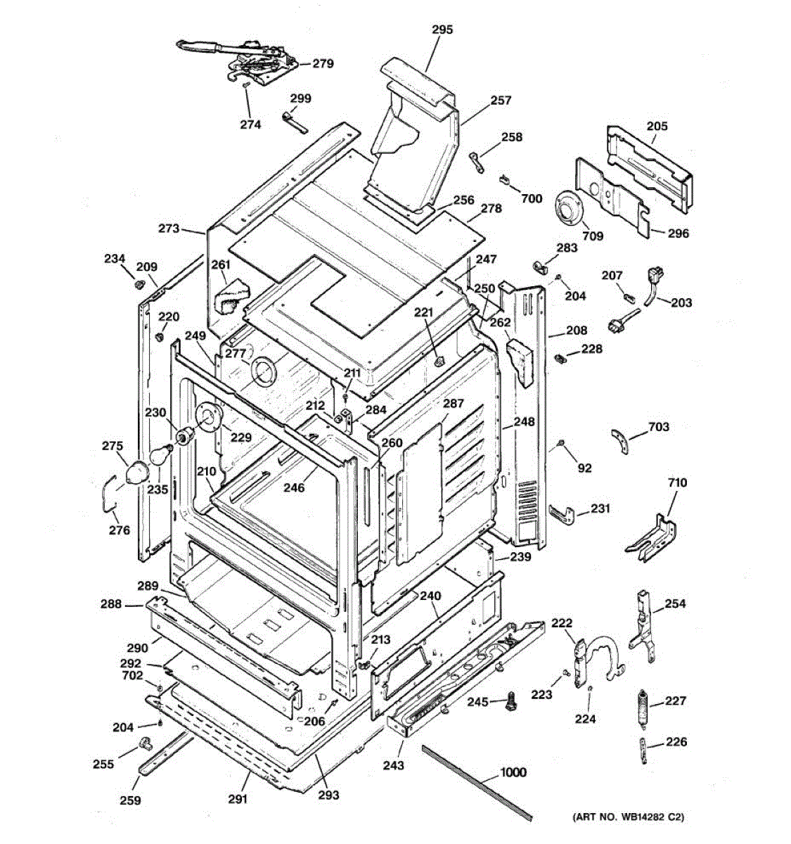Mounting bracket secures oven components inside your range. Replace if bracket is bent, cracked, broken, or missing to restore proper structural support.