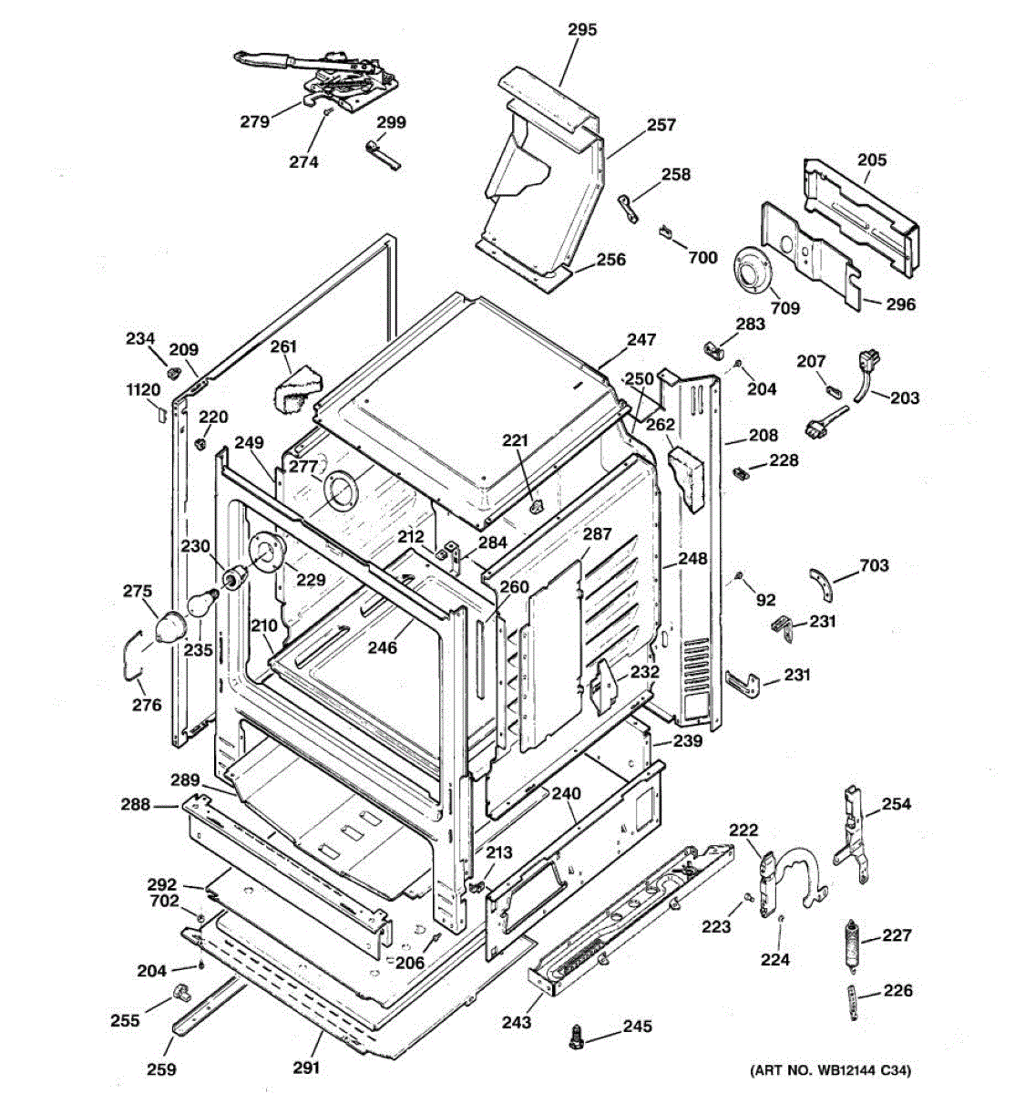 Mounting bracket secures oven components inside your range. Replace if bracket is bent, cracked, broken, or missing to restore proper structural support.