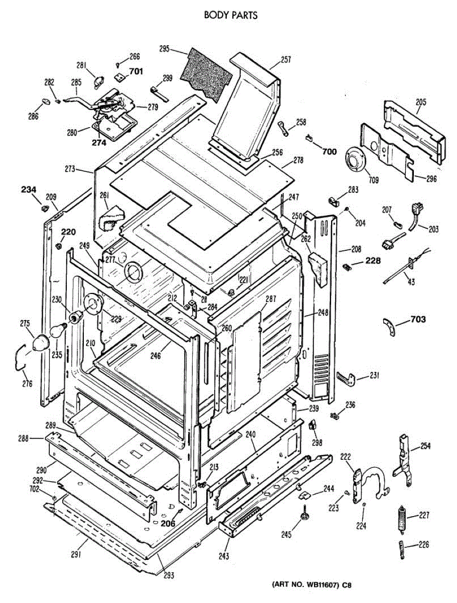Frame weld assembly for ranges. Structural component that forms part of the cabinet framework. Replace if bent, cracked, or damaged during installation or use.
