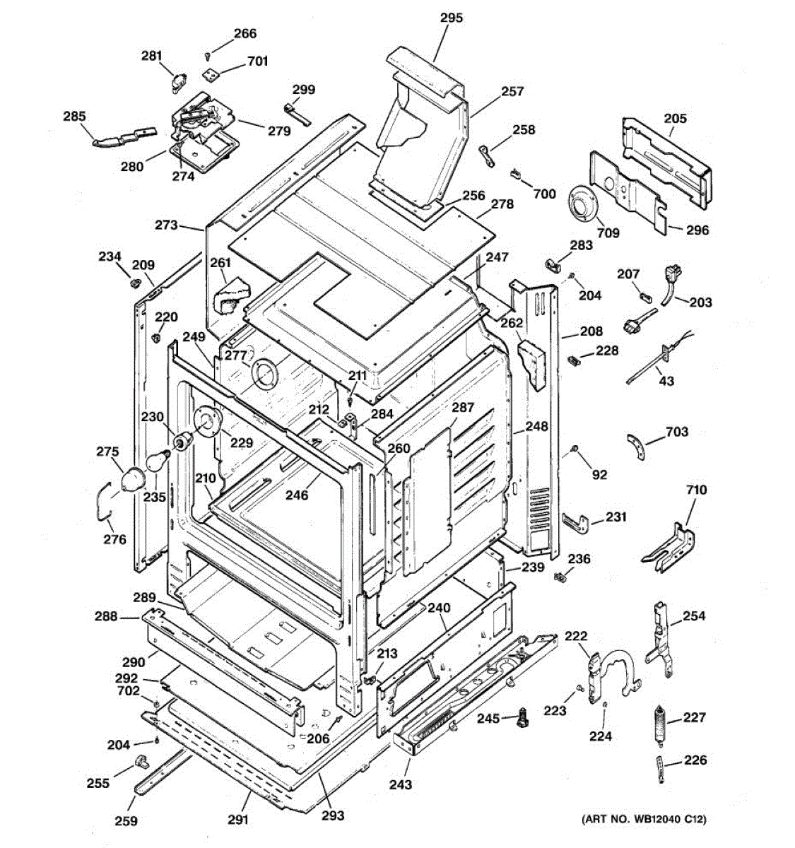Frame weld assembly for ranges. Structural component that forms part of the cabinet framework. Replace if bent, cracked, or damaged during installation or use.