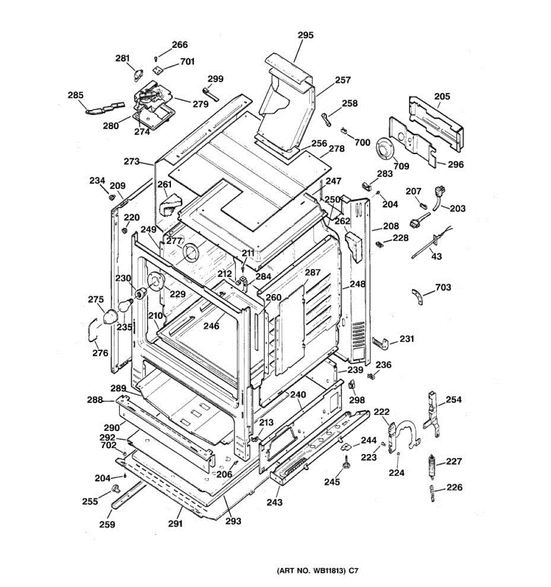 Frame weld assembly for ranges. Structural component that forms part of the cabinet framework. Replace if bent, cracked, or damaged during installation or use.