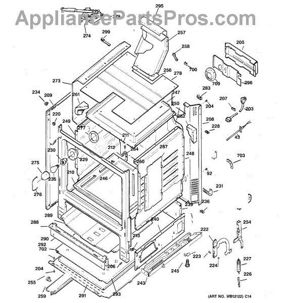 Frame weld assembly for ranges. Structural component that forms part of the cabinet framework. Replace if bent, cracked, or damaged during installation or use.