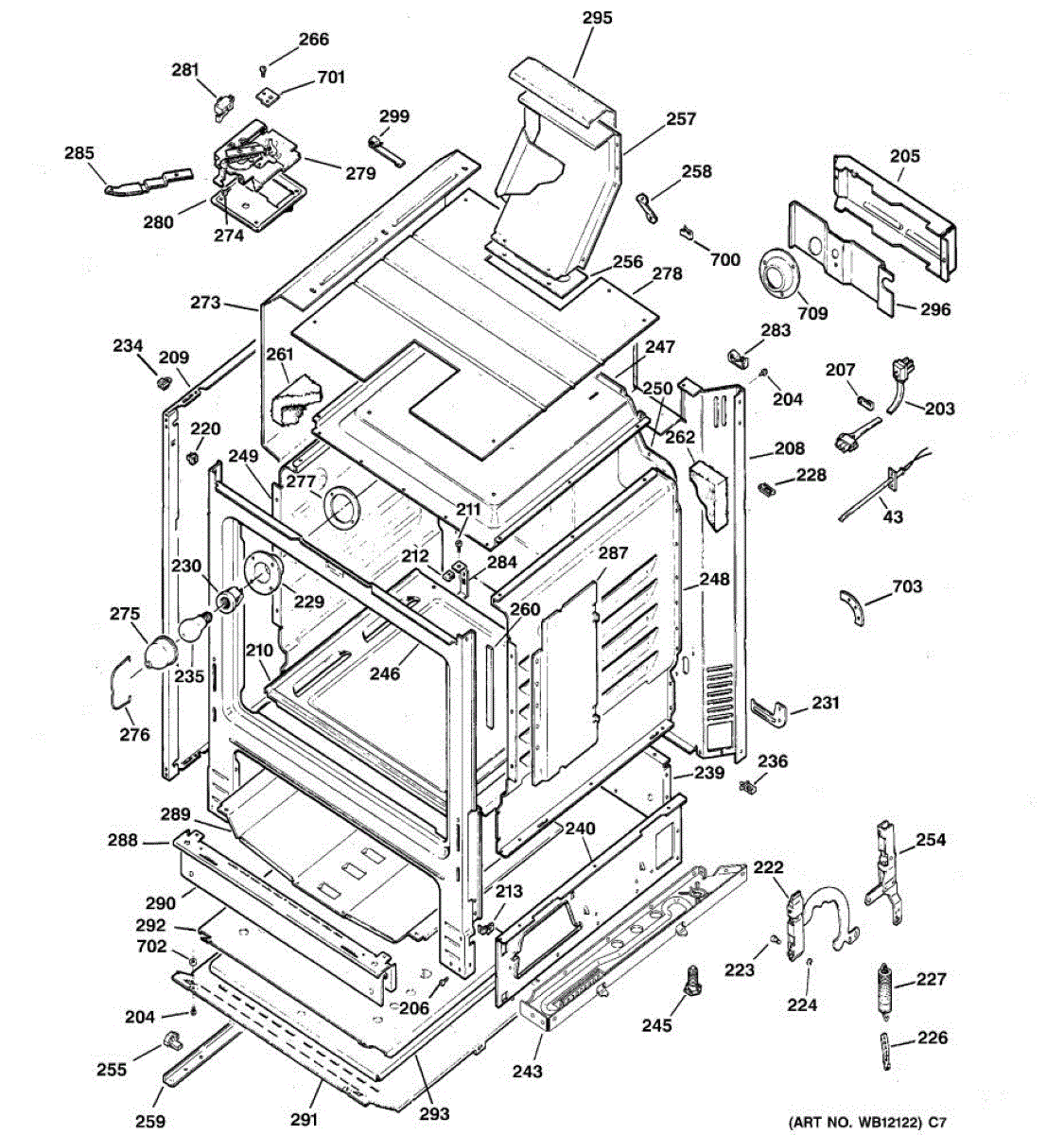 Frame weld assembly for ranges. Structural component that forms part of the cabinet framework. Replace if bent, cracked, or damaged during installation or use.
