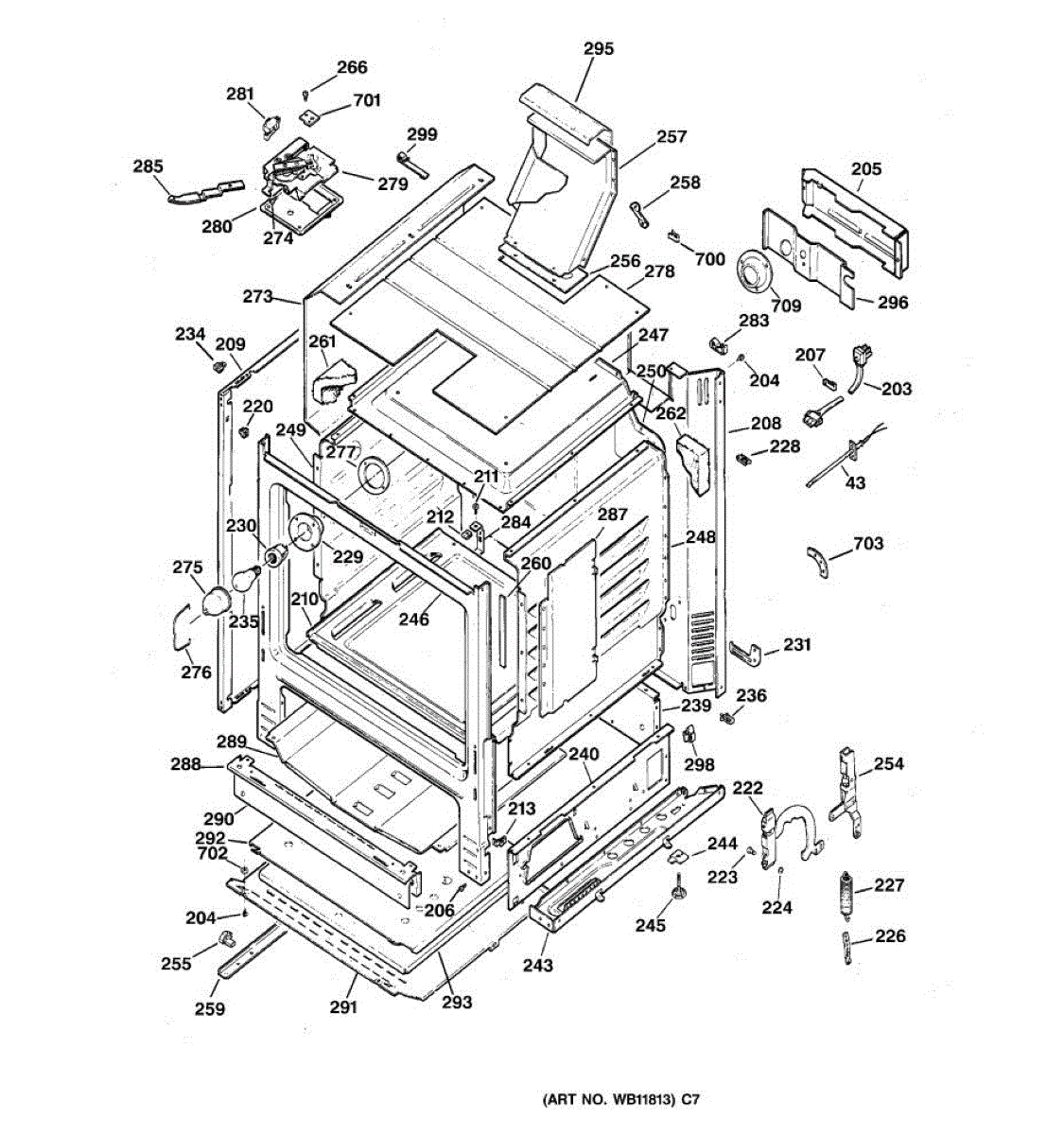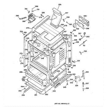Frame weld assembly for ranges. Structural component that forms part of the cabinet framework. Replace if bent, cracked, or damaged during installation or use.