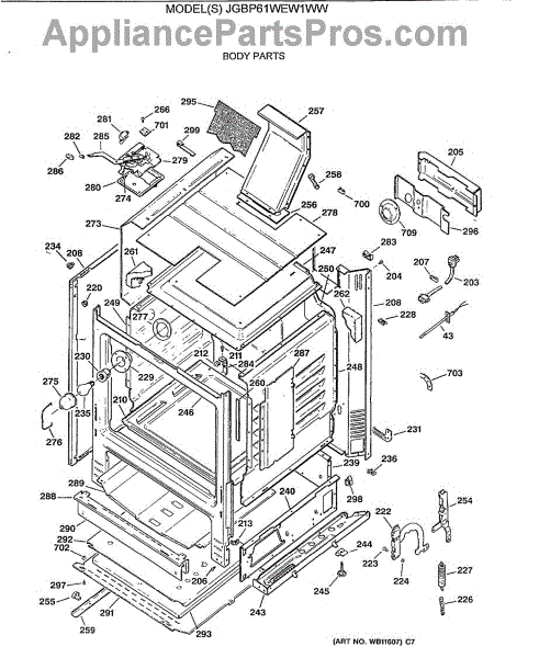 Parts for Ge JGBP61WEW1WW: 02 - Body Parts