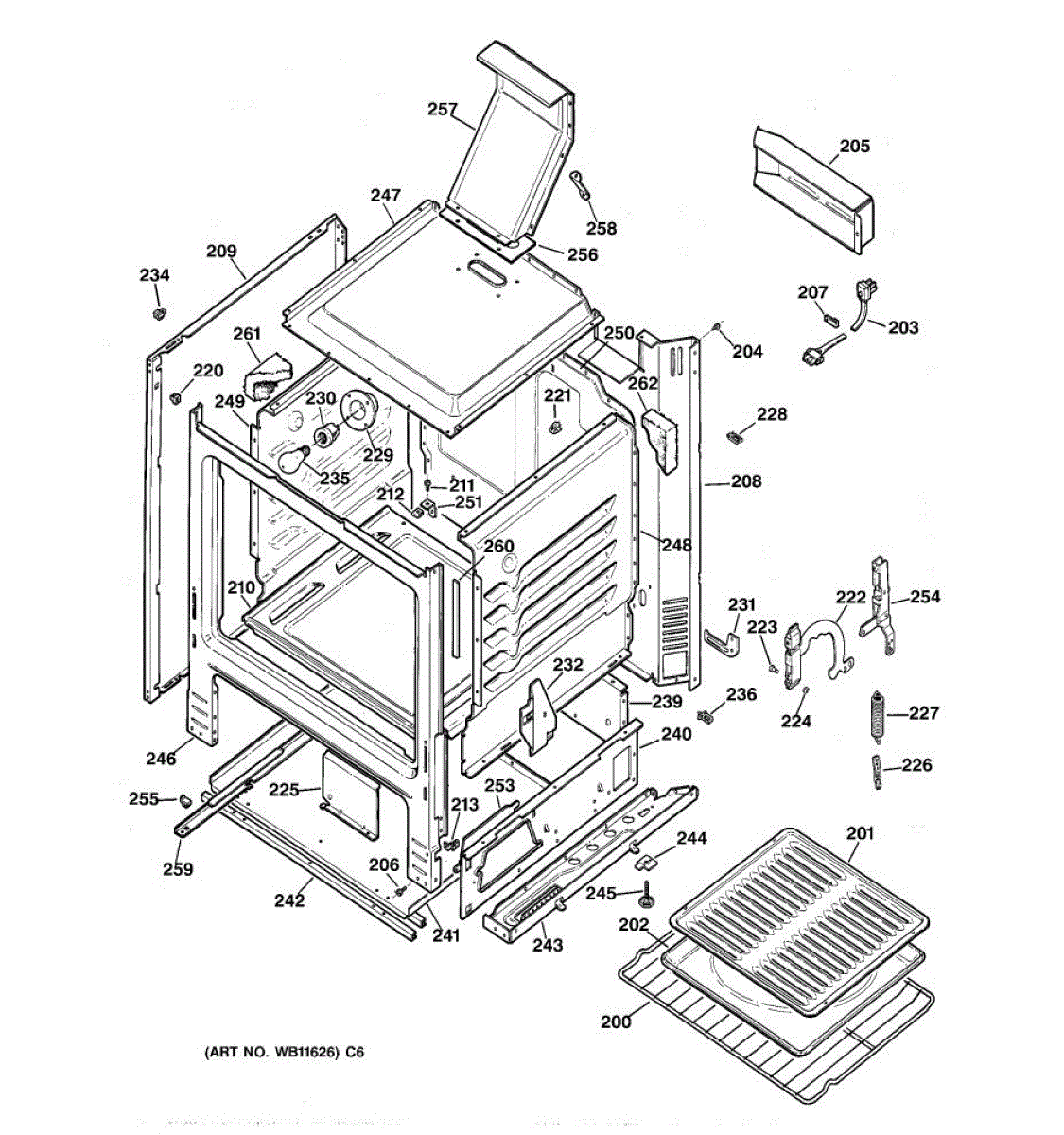 Frame weld for gas ranges. This structural component supports the range cabinet. Replace if cracked, broken, or damaged during repair work.