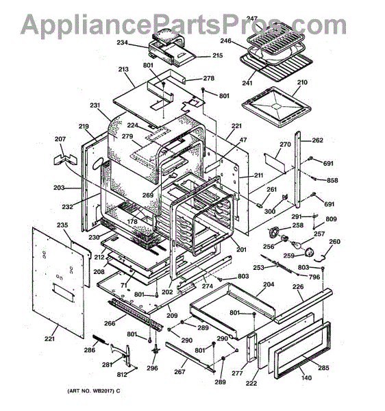 Drawer slide guide assembly for ovens and ranges. Replaces broken or worn drawer glides that cause drawers to stick, sag, or fall off track.