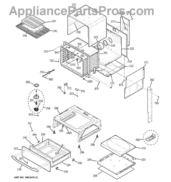The Rear Door Support is an OEM replacement part for GE ranges. Located at the base of the range, this bracket provides weight-bearing support for the lower oven drawer. It facilitates smooth extension and retraction of the drawer. Causes of faulty support can include cracks or fractures developing over extended use, worn joints unable to sustain drawer weight, or misalignment from repeated opening/closing stress. Symptoms of a bad support include: