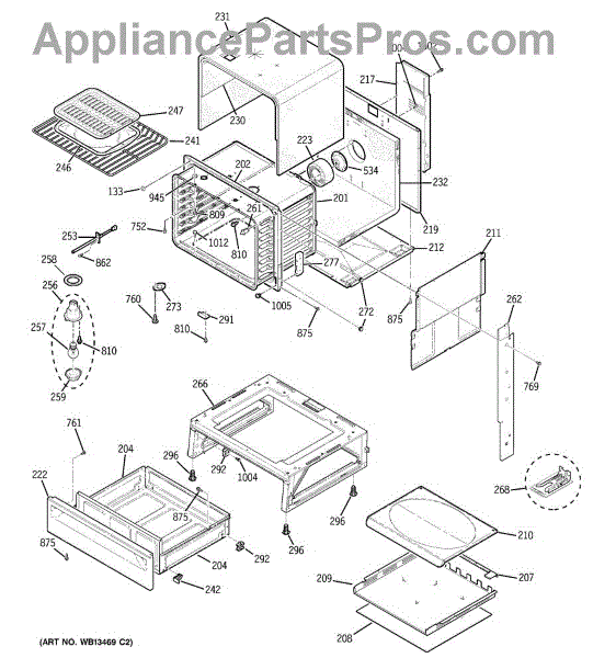 The Rear Door Support is an OEM replacement part for GE ranges. Located at the base of the range, this bracket provides weight-bearing support for the lower oven drawer. It facilitates smooth extension and retraction of the drawer. Causes of faulty support can include cracks or fractures developing over extended use, worn joints unable to sustain drawer weight, or misalignment from repeated opening/closing stress. Symptoms of a bad support include:
