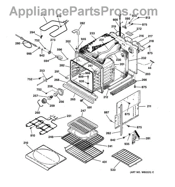 This Back main is the oven's rear chassis panel that supports internal components and protects wiring. It restores structural support and helps prevent contact with hot or moving parts for safe operation. What it does: