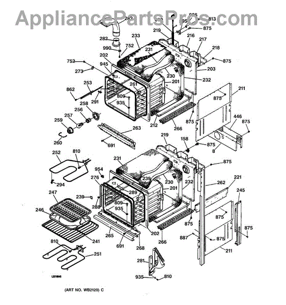 This Back main is the oven's rear chassis panel that supports internal components and protects wiring. It restores structural support and helps prevent contact with hot or moving parts for safe operation. What it does: