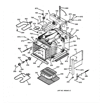 This Back main is the oven's rear chassis panel that supports internal components and protects wiring. It restores structural support and helps prevent contact with hot or moving parts for safe operation. What it does: