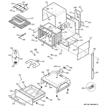 The Broiler Assembly is an OEM replacement part for GE range. Located inside the oven, it houses the heating elements responsible for the broil cooking function. Causes of a bad broiler assembly can include cracked or burnt-out heating elements that no longer ignite, damage from accidentally being cleaned with abrasive chemicals, or warping of metal components from overheating. Symptoms of a bad broiler assembly include: