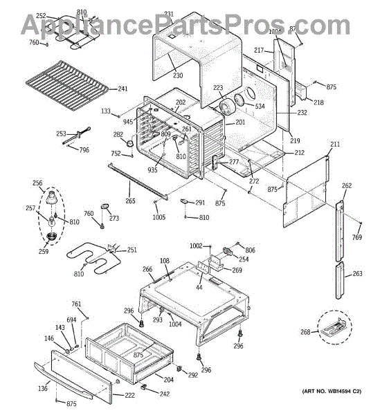 The Broiler Assembly is an OEM replacement part for GE range. Located inside the oven, it houses the heating elements responsible for the broil cooking function. Causes of a bad broiler assembly can include cracked or burnt-out heating elements that no longer ignite, damage from accidentally being cleaned with abrasive chemicals, or warping of metal components from overheating. Symptoms of a bad broiler assembly include: