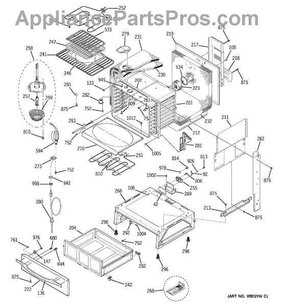 The Broiler Assembly is an OEM replacement part for GE range. Located inside the oven, it houses the heating elements responsible for the broil cooking function. Causes of a bad broiler assembly can include cracked or burnt-out heating elements that no longer ignite, damage from accidentally being cleaned with abrasive chemicals, or warping of metal components from overheating. Symptoms of a bad broiler assembly include: