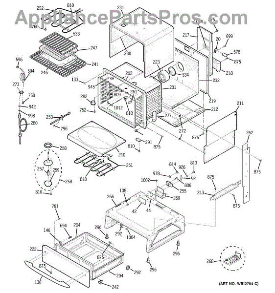 The Broiler Assembly is an OEM replacement part for GE range. Located inside the oven, it houses the heating elements responsible for the broil cooking function. Causes of a bad broiler assembly can include cracked or burnt-out heating elements that no longer ignite, damage from accidentally being cleaned with abrasive chemicals, or warping of metal components from overheating. Symptoms of a bad broiler assembly include: