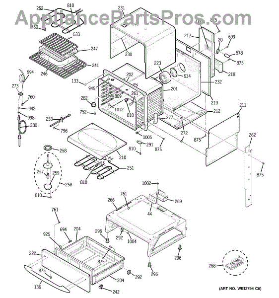 The Broiler Assembly is an OEM replacement part for GE range. Located inside the oven, it houses the heating elements responsible for the broil cooking function. Causes of a bad broiler assembly can include cracked or burnt-out heating elements that no longer ignite, damage from accidentally being cleaned with abrasive chemicals, or warping of metal components from overheating. Symptoms of a bad broiler assembly include: