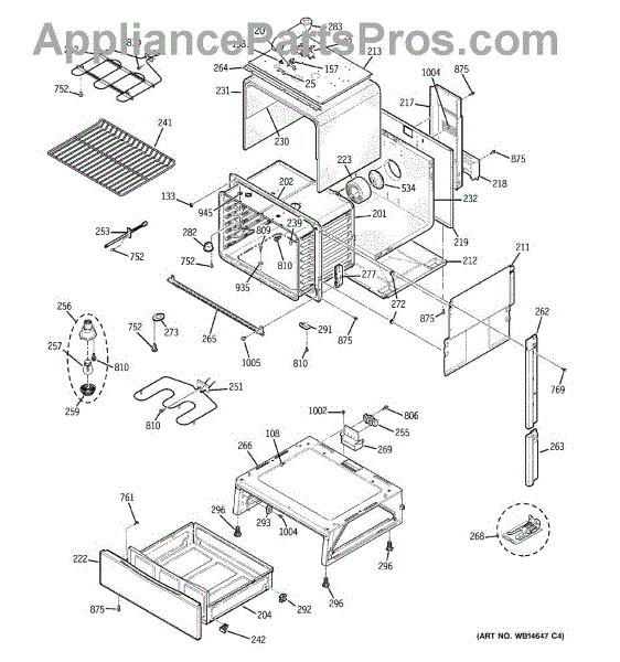 The Rear Door Support is an OEM replacement part for GE ranges. Located at the base of the range, this bracket provides weight-bearing support for the lower oven drawer. It facilitates smooth extension and retraction of the drawer. Causes of faulty support can include cracks or fractures developing over extended use, worn joints unable to sustain drawer weight, or misalignment from repeated opening/closing stress. Symptoms of a bad support include: